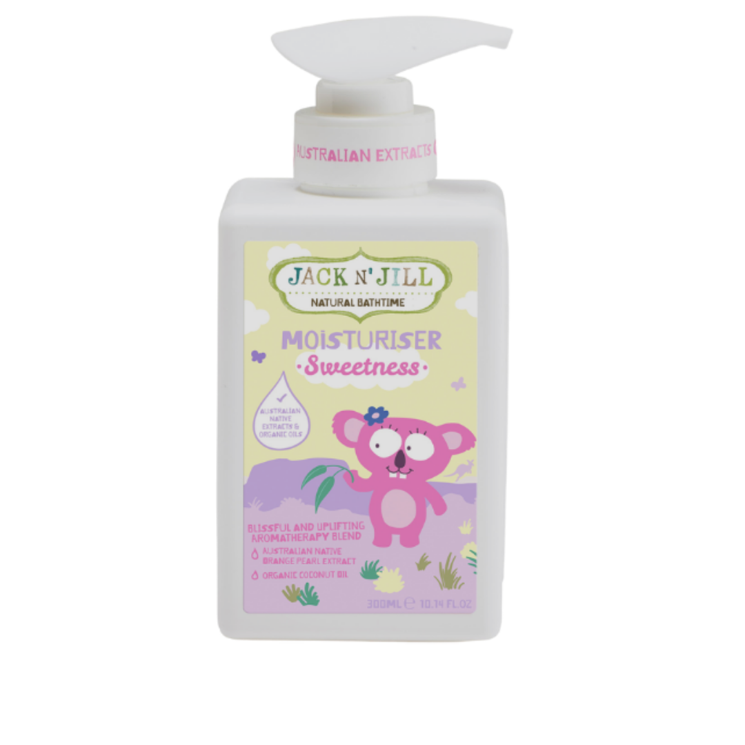 O hidratante sweetness (300mL) contém extratos naturais e ingredientes de forma a criar uma fórmula enriquecedora e hidratante. É leve e formulado especialmente para a pele sensível das crianças com ingredientes suaves e não irritantes. Contém ingredientes como alantoína, glicerina e pantenol. Estes trabalham em conjunto para deixar a pele super macia e profundamente hidratada.